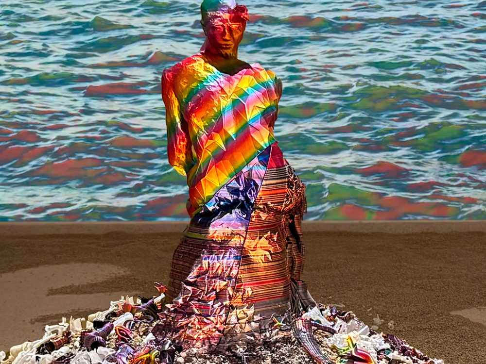 Equipo: Laura Restrepo: Edición de video y TouchDesigner / Angie Liseth Valiente: Modelado e impresión 3D / Alek Aune: Escultura digital / Karen Aune: Video.