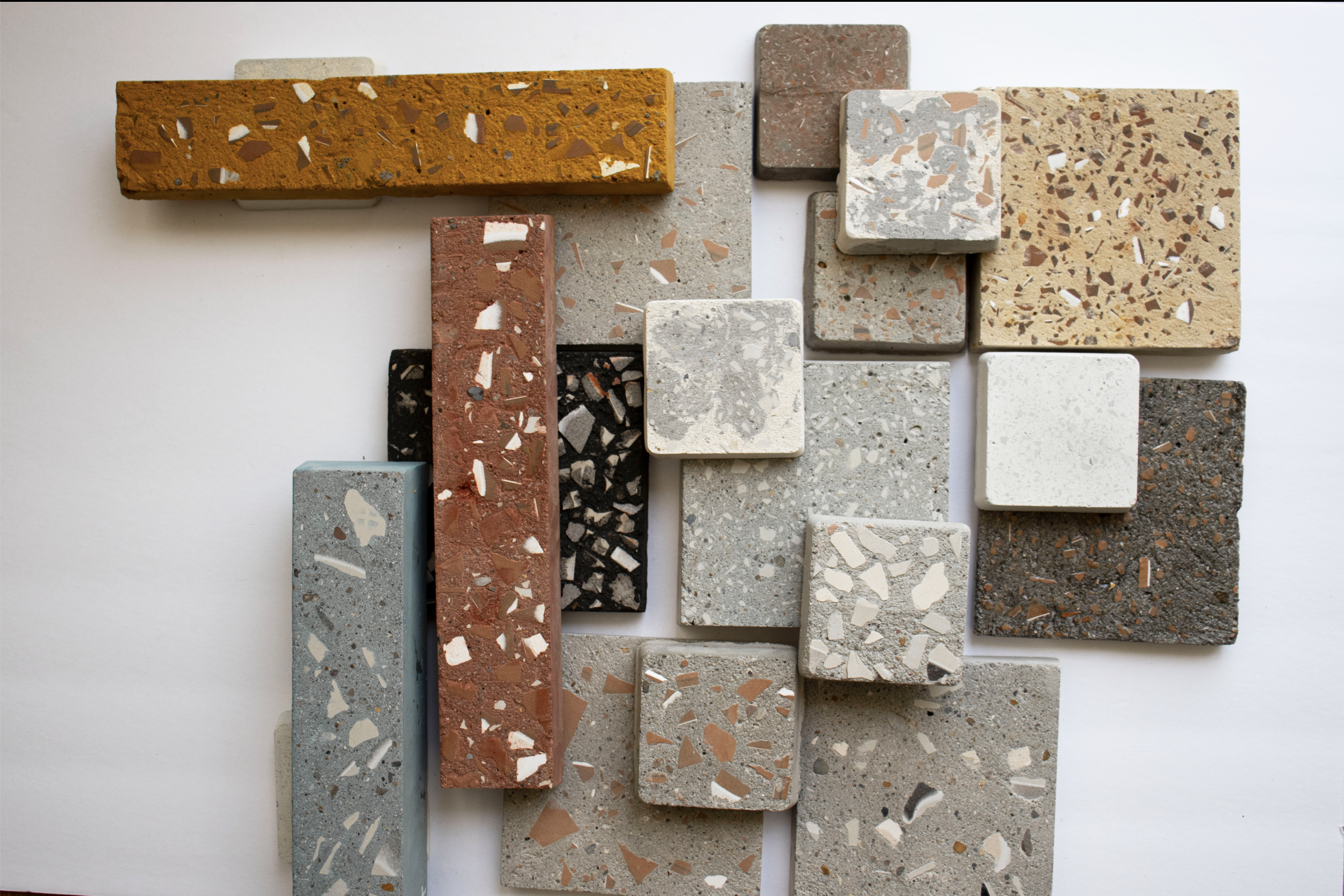 El proyecto de grado de Angela trata de aprovechar los residuos de cerámica cocida y mezclarlos con cemento para transformarlos en un compuesto sostenible. El proyecto se desarrolló en colaboración con la empresa colombiana Corona y como ejemplo de la versatilidad y utilidad de este compuesto, crea una línea de mobiliario exterior.