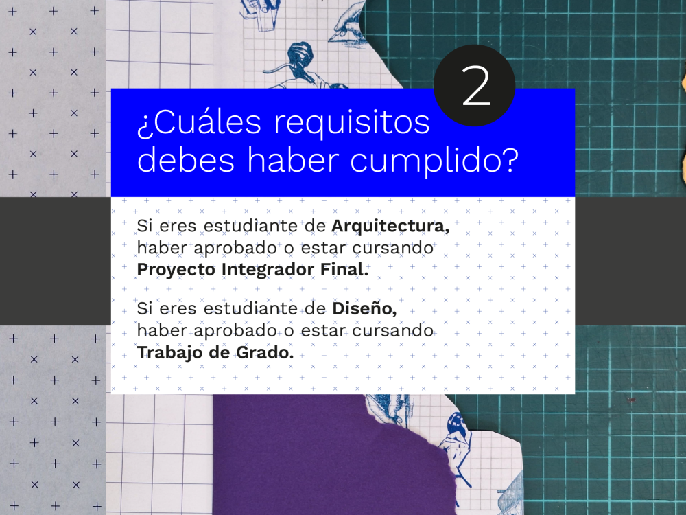 Si eres estudiante de Diseño, haber aprobado o estar cursando Trabajo de Grado.