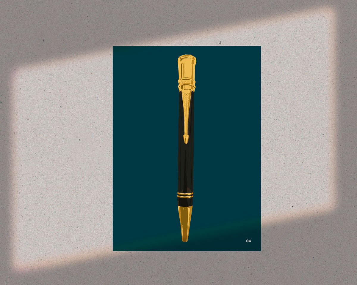 Esta colección nace de una fascinación por el objeto, del objeto único y exclusivo. Objetos admirados por quien los ve o exhibe pero siendo posible de obtener para sólo algunos. A lo largo de este catálogo, analizamos veinticinco esferos Parker de Héctor Rincón, su coleccionista. Esta colección es conformada por setenta y un esferos Parker, los cuales fueron coleccionados por un deseo profundo, a veces disfrazado por medio del consumo de otros objetos o experiencias, donde el coleccionista y el objeto se encuentran sin realmente estar en una búsqueda consciente. Todo en busca de satisfacer un deseo, de completar una colección que nunca lo está realmente, y que revela la identidad del coleccionista.