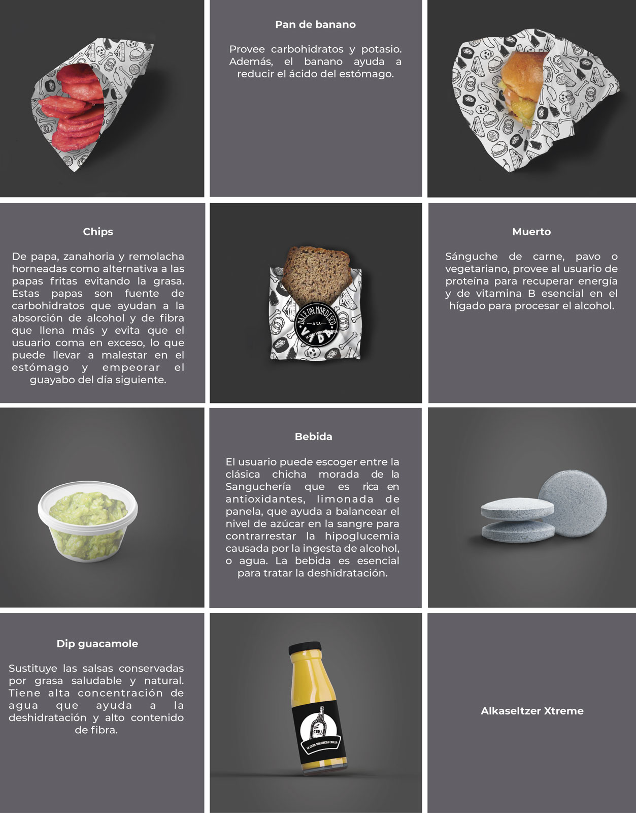 El Kit Levanta Muertos, es un producto diseñado para La Lucha Sanguchería como un menú especial para los fines de semana. Este ofrece al usuario una alternativa para alimentarse después de las fiestas, con el fin no solo de comer de forma balanceada, sino también de educar a las personas sobre lo que necesitan para una óptima recuperación del cuerpo después consumir alcohol. Reúne los diferentes tipos de alimentos necesarios para ayudar al cuerpo a contrarrestar los efectos del alcohol. Estos alimentos son pequeños bocados que en conjunto proporcionan un menú completo y balanceado dispuesto para que las personas lo coman con la mano y disfruten la experiencia del acto del picar.