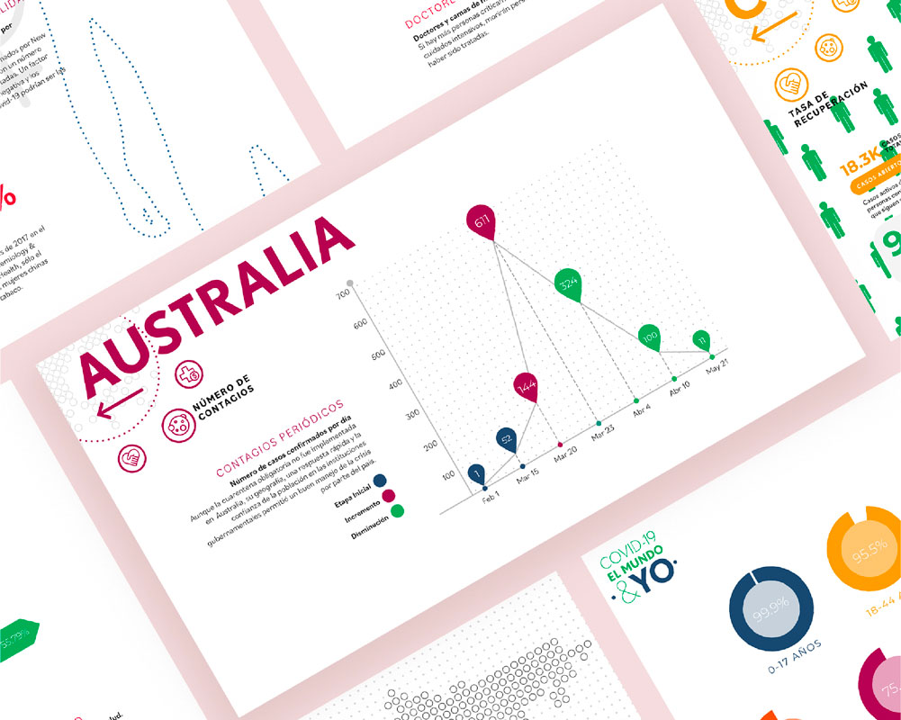 Es una visualización de datos interactiva que tiene como propósito informar sobre los factores que influyen en el contagio y recuperación del COVID-19. Se divide en un análisis de factores endógenos y una comparación del sistema de salud, tasa de recuperación y número de contagios de catorce países relevantes. Los datos de esta visualización fueron recolectados hasta el 21 de mayo del 2020.
