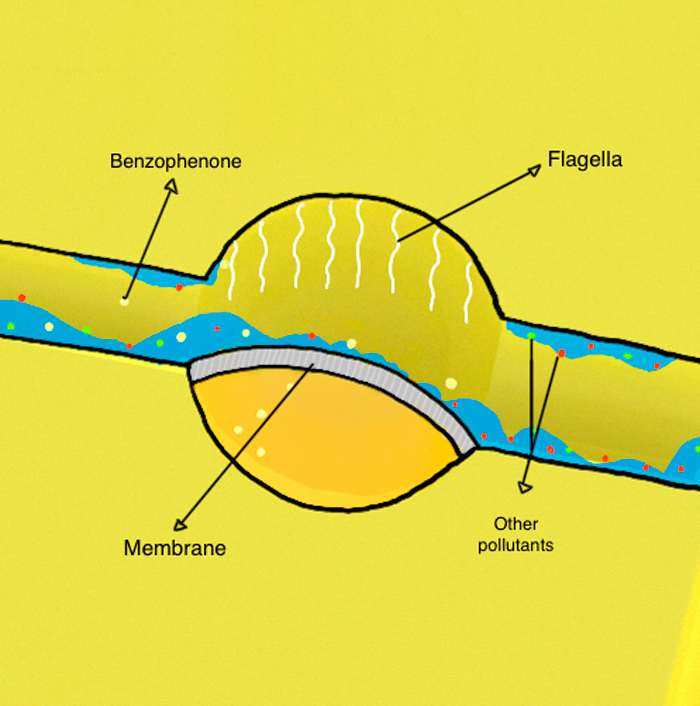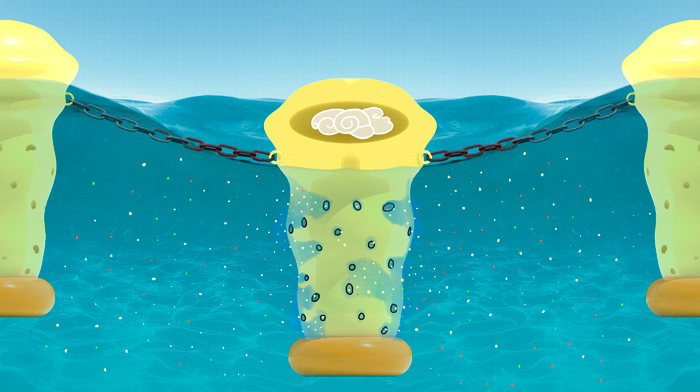 Seaponji is a buoy that eases the negative impacts of the chemicals substances of sunscreen spilled in the sea. This buoy uses a nano filter mechanism inspired by the membrane function of the leucon sponges that filters harmful chemicals, such as Benzophenone, which is released by sunscreen and other type of cosmetics on beaches around the world. This project was made for Biodesign Challenge 2021.