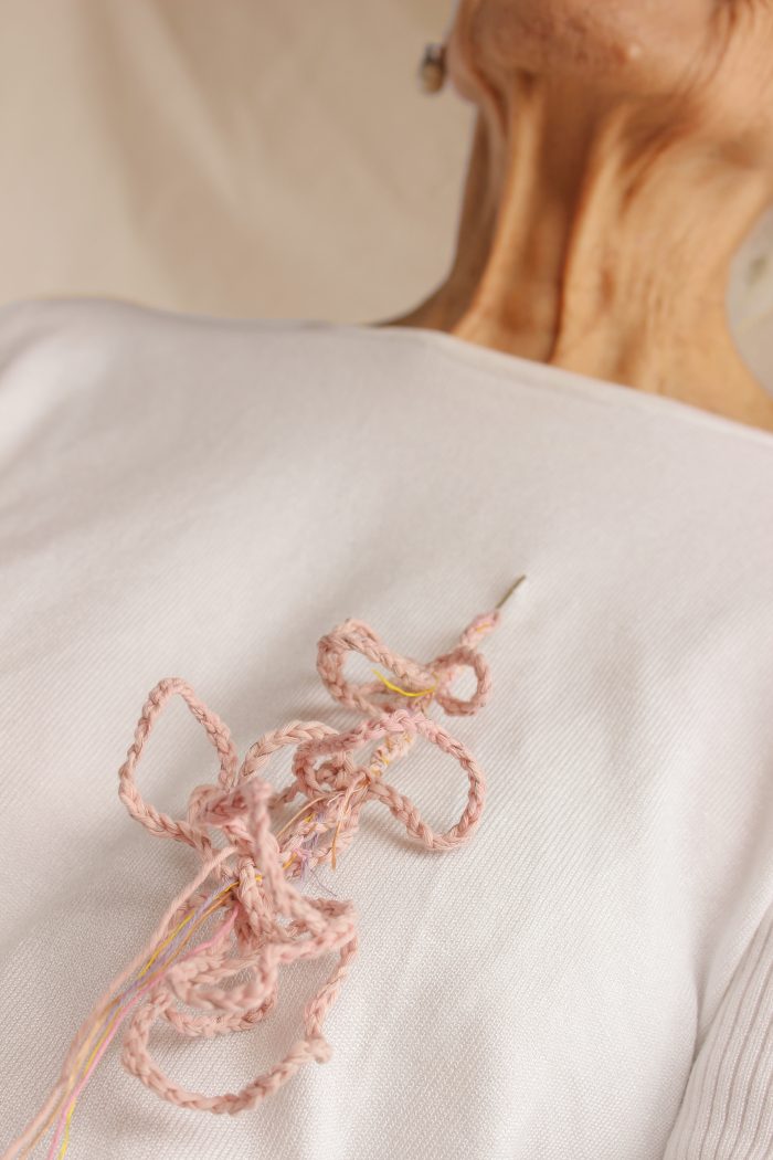 Repeticiones Inconscientes resignifica la pérdida de la memoria a través de tres piezas textiles en las que la repetición y los volúmenes son protagonistas. Busca mostrar que el proceso de pérdida de memoria es mucho más que un proceso triste y frustrante para quienes lo rodean; y que, para quienes lo viven, implica recuperar la capacidad de asombro ante las experiencias ya vivídas, sentirlas como si fuera la primera vez. La primera pieza, La Maraña, retrata la desconexión que va sucediendo entre las neuronas y resulta entonces en una maraña de pensamientos. La segunda pieza, Un Nudo, simboliza una repetición infinita que los ata al olvido; entre menos conexiones, más repeticiones, más grande el asombro. La última pieza, Un Espiral, simboliza cómo estas repeticiones se van tejiendo con el tiempo y cómo a medida que este pase, el asombro lo acompañará.