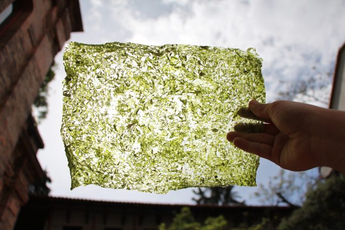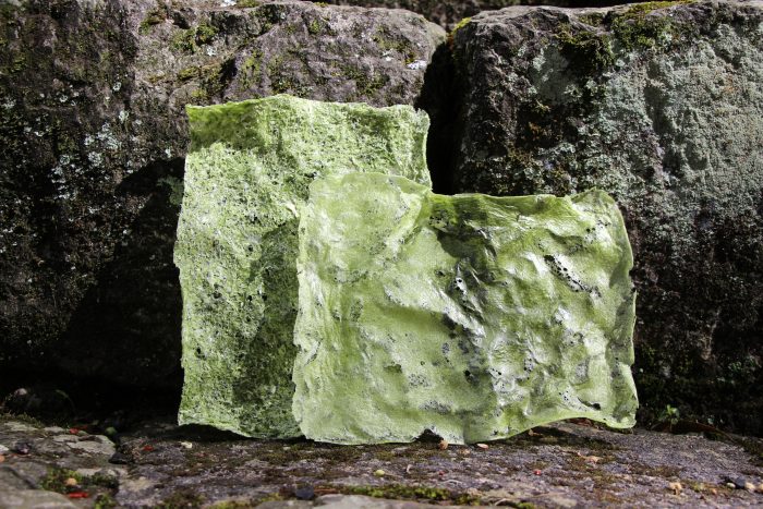 A través de Alienus se busca crear materiales completamente sostenibles y biodegradables, a base de cactus, con el fin de lograr el reemplazo de otros elementos que contaminan el ambiente y contribuyen con el deterioro del planeta. Durante la experimentación para la creación del material se realizaron moodboards vegetales, que ayudaron a generar una visión sobre los logros a los que queríamos llegar. Se empezó a cosechar el tejido vascular del cactus, limpiándolo y licuándolo para extraer un material viscoso, acuoso y pegajoso. Se experimentó con diferentes aglutinantes para llegar a dos presentaciones finales: Fibrae, un material plegable, orgánico y poroso, el cual está hecho con la fibra del tejido vascular, y Sucus, un material orgánico, liso y flexible, hecho con el jugo del cactus. El conjunto de materiales compone a Alienus, la búsqueda de nuevos universos materiales para un futuro sostenible.