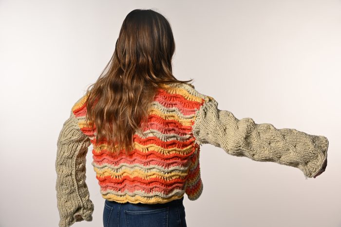 El Desierto de la Tatatcoa, florecía adornado por miles de flores y árboles que, con el paso del tiempo se vieron consumidos por la sed hasta transformarse en un desierto. Este cambio drástico dejó una huella única, caracterizada por cañones que cobran vida durante el invierno. Las plantas de esta región desarrollaron una adaptación a las condiciones climáticas extremas, creando raíces verticales y horizontales que pueden extenderse hasta 15 y 30 metros. Esta habilidad de supervivencia inspiró la creación de este proyecto, que refleja la tenacidad y la resiliencia de la flora de la Tatacoa. Las texturas que se encuentran en este desierto, las formas que la naturaleza ha esculpido con el tiempo y los colores que se despliegan en los diferentes estados del Desierto de la Tatacoa son elementos fundamentales para la concepción y elaboración de la prenda hecha con las técnicas de tejido en crochet y dos agujas.