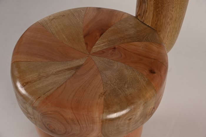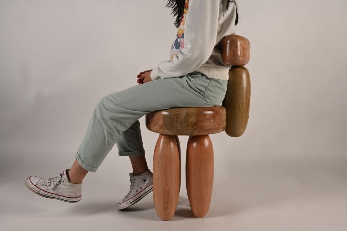 Glompi es una silla en madera que nace con la idea de crear una pieza que una lo decorativo y la funcionalidad. Inspirada en las dimensiones de las sillas de Wendell Castle y las formas de globo de Jeff Koons, esta busca gracias a su tamaño y formas curvas ser más que una silla común sino una única pieza digna de contemplar.