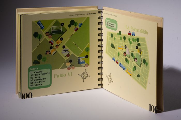 Nuestra guía turística titulada La Esmeralda: la joya escondida de Bogotá es un proyecto hecho con amor y sensibilidad hacia la acogedora comunidad de este icónico barrio capitalino. Hace un año exploramos el sector de La Esmeralda-Pablo VI, conociendo su historia y sus rincones más especiales e interactuando con la comunidad para envolvernos en actividades cotidianas del sector. Después de múltiples días de investigación, visitas y entrevistas, registramos la información a través de fotografías, ilustraciones, mapas y medios escritos. Todo esto consolidó el producto físico, el cual contiene 104 páginas, pero lo que verdaderamente le dio el color y la vida a la guía turística fueron las ocho personas con las que trabajamos, pues gracias a ellas llegamos a los diferentes hallazgos con sus respectivos patrones, acciones, razones e intenciones, y así logramos comprender el barrio desde sus diversas perspectivas y el significado histórico-cultural que este tiene en nuestra ciudad.