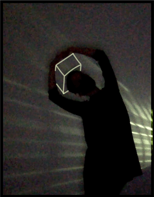 Para llevar a cabo la propuesta pusimos nuestra atención en la construcción de un instrumento simbólico y físico de control del movimiento en el espacio: el cubo y el cuadrado, un objeto estático que cristalizara un posible campo de expresión humano. Mediante visualizaciones en forma de animaciones e imágenes gráficas en 2D y 3D, buscamos la manera de analizar diversas estructuras y componentes del cuerpo, resaltando las limitaciones espaciales y temporales del individuo. Utilizamos tecnología actual para crear la propuesta, de modo que ésta nos permite visualizar parámetros relacionados con forma, tiempo y ritmo.