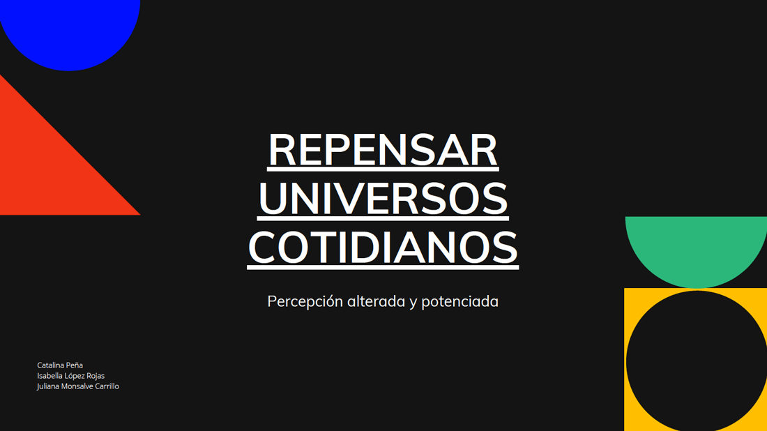 Repensar universos cotidianos se compone de cuatro cadáveres exquisitos construidos a partir de objetos de cuatro espacios del hogar: la cocina, el baño, la habitación y el estudio, y se acompaña con el audio del sonido que produce cada uno. Esta propuesta parte de la noción de “percepción alterada y potenciada” de la Bauhaus, y es traducida al presente para redescubrir estos espacios de nuestro entorno cotidiano, como una respuesta ante la monotonía de la cuarentena. Para ello, se escoge el medio audiovisual como una forma de aprovechar las nuevas tecnologías, tal como se proponía esta escuela, para alcanzar precisamente estas nuevas expresiones. De esta forma, se interpreta bajo el lente de la Gestalt –cómo distintos elementos juegan entre sí para construir totalidades fluidas y plásticas que alteran nuestra forma de ver y pensar la realidad–, y desde la sinestesia -como un concepto poderoso para potenciar un sentido, a partir de algo percibido desde otro. En estas piezas audiovisuales, es posible evidenciar transversalmente la influencia tanto conceptual como formal del trabajo de Man Ray, Laszlo Moholy-Nagy y Luis Buñuel. Finalmente, es esencial mencionar que también se tuvo en cuenta el plano social característico de la Bauhaus, al orientar todas las herramientas mencionadas anteriormente para comunicar una crítica sarcástica respecto a la producción de objetos innecesarios en la