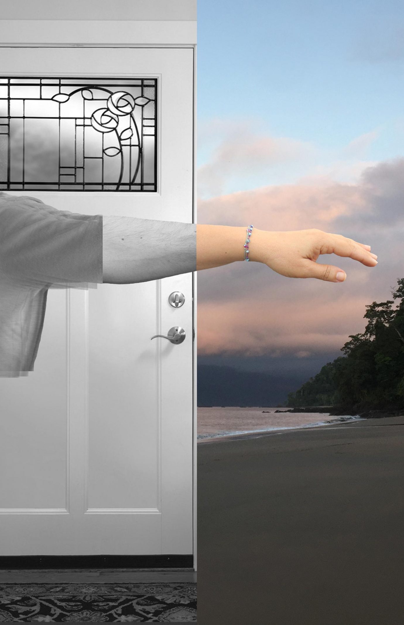 Para la creación de la serie fotográfica, tuvimos un enfoque corporal que, similar a lo que buscaba Grunow, tenía como objetivo la armonización y la idea de cuerpo en relación con un espacio. Este referente nos sirvió para reflexionar sobre el encierro generado por la cuarentena de este año, junto con las añoranzas del ser libre en un lugar exterior mientras que se muestra la diferencia de situaciones que se producen en cada uno de los contextos. La liberación del encierro como una dualidad entre las experiencias y sensaciones que se reflejan según la ubicación del cuerpo en el espacio, como las interacciones contrastan según su ubicación, para esto se refleja mediante técnicas de “interacción de color” como son empleadas por Josef Albers, la asociación del uso del color a un espacio exterior, vibrante y armónico, apoyado por el uso de escala de grises denotando sensaciones vacías, de desesperación y ansiedad, por ende se logra potenciar la sensación de liberación que se genera al salir a un espacio abierto, libre y colorido.