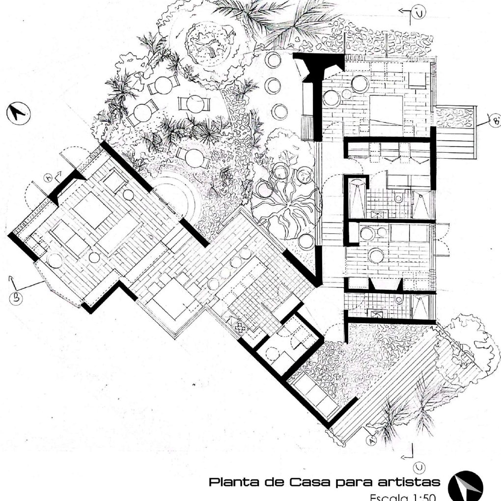 El diseño arquitectónico de la casa y taller para artistas en Sopó, Cundinamarca, se materializa en una estructura tipo barra que se integra armónicamente con el entorno natural. Con una fachada principal revestida de madera y vidrio que maximiza las vistas panorámicas, el interior se organiza en torno a un espacio central de doble altura destinado a la creación y exhibición artísticas, rodeado por áreas multifuncionales que incluyen dormitorios, áreas de estar y almacenamiento. El taller de arte, situado en el extremo opuesto, ofrece un ambiente tranquilo y luminoso para la creatividad, mientras que las terrazas y los patios exteriores proporcionan espacios para la contemplación y la socialización al aire libre. Con abundante luz natural que penetra a través de grandes ventanales y claraboyas estratégicamente ubicadas, este ambiente se convierte en un lienzo en blanco donde los artistas pueden dar rienda suelta a su imaginación y expresión.