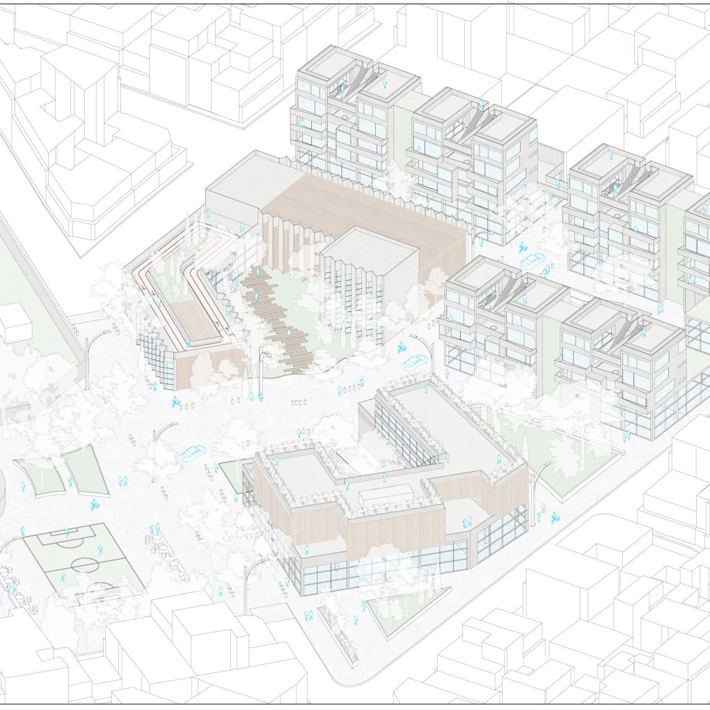 En el centro del barrio Rionegro resalta el Club de Suboficiales de la Fuerza Aérea, el cual colinda con siete manzanas. Dicho club se encuentra totalmente cerrado por cuatro muros en todo su paramento, aislándose del resto del barrio. Consecuentemente, se plantea un proyecto cuyo objetivo es generar una conexión del ámbito militar con el barrio. Para dicho propósito se interviene una de las manzanas en el costado suroriental del club, con el objetivo de abrir el centro del barrio y conectarlo con el resto de manzanas. Para vincular a los militares con el barrio, se plantea un centro de rehabilitación física para militares enfocado en el deporte, el cual tendría tres usos principales: consultorios de fisioterapia, gimnasios y vivienda. Con el propósito de conectar este nuevo proyecto al barrio, se tuvieron presentes las visuales y la continuidad, prolongando las calles y adentrándolas al área de intervención, generando una red de conexiones que conduzca a la gente hacia este nuevo centro del barrio, con nuevas zonas verdes y espacio público con usos para la comunidad y para los militares.