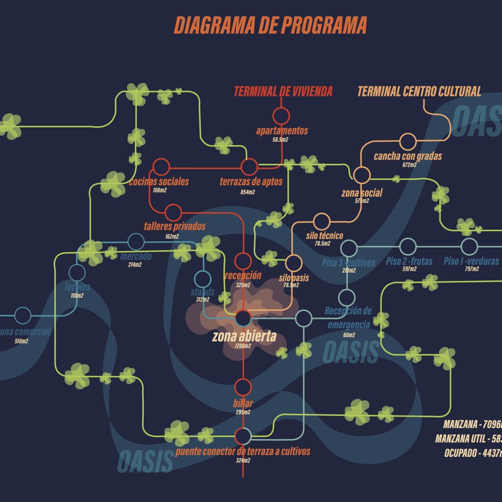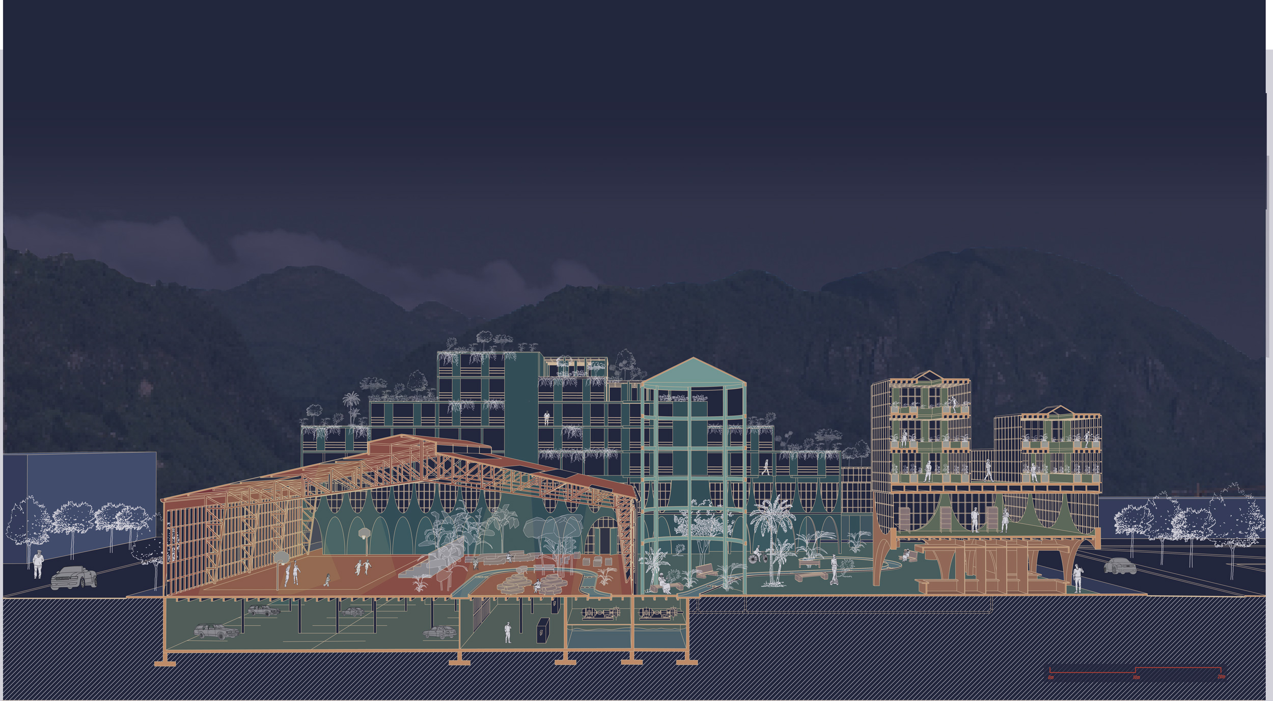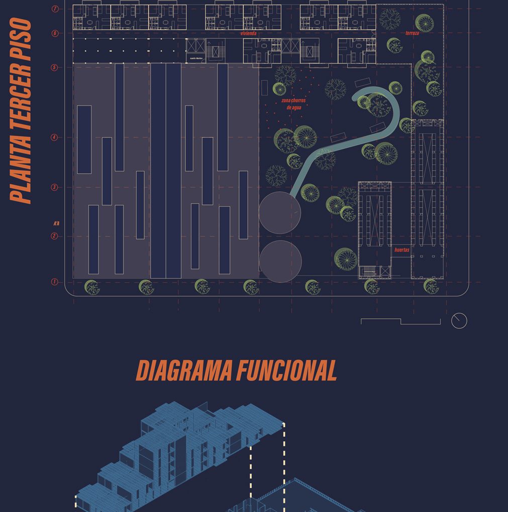 Se pensó en una edificación de vivienda, producción e interacción. Las personas que vivan allí podrán trabajar en los cultivos verticales, de los cuales se extraerán y pasarán a una pequeña zona comercial en primer nivel. Linnaline piensa en esta nueva población que llegará al barrio, también se enfoca en dar un respiro de la densidad industrial del sector y, por medio de una edificación que compone correctamente un diverso programa de usos, se logra llegar a un centro que integra a la comunidad y el medio ambiente.