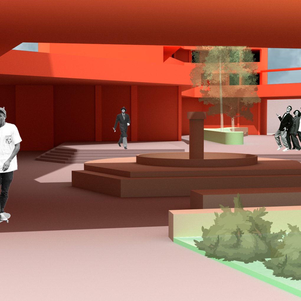 Pensando en la comodidad del peatón, la permeabilidad y la posibilidad de reactivar social y económicamente la zona intervenida, se planteó una propuesta a partir de un centro de manzana abierto, mediante dilataciones según los espacios públicos aledaños y las esquinas; igualmente, volúmenes exentos encima de un basamento, de tal manera que los niveles superiores se complementen con las actividades de primer piso, dando simultáneamente la noción de mayor seguridad.