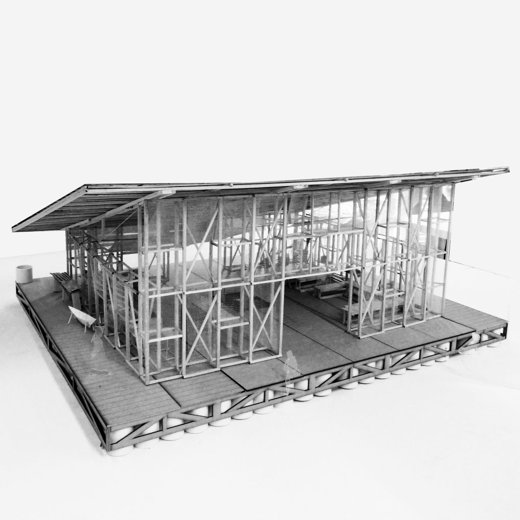 Se concibe como un sistema modular de guadua, mangle y teca, lo que permite una construcción eficaz y versátil, desmontable, con uniones basadas en nudos, que posibilitan su transformación en el tiempo por medio de una estructura flexible y adaptable en distintos contextos del Pacífico colombiano.