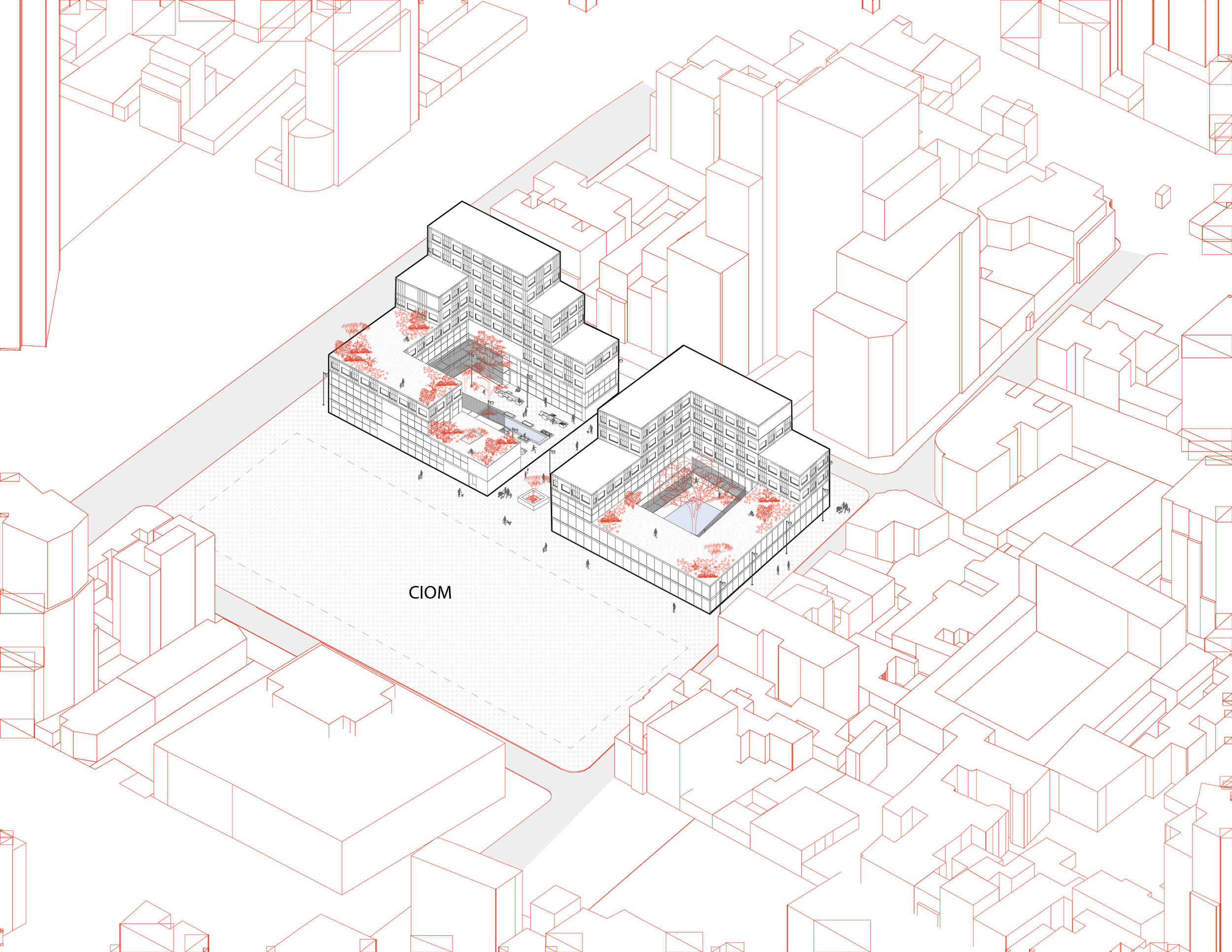 Este Centro para personas con discapacidad cognitiva se enfoca en proporcionar un entorno inclusivo y adaptado a las necesidades específicas de los usuarios con diferentes niveles de discapacidad. El diseño se construye a partir de dos bloques principales: un bloque “sonoro” que consta de un patio abierto al público y otro “asonoro”, donde los espacios se rigen a partir de un patio de contemplación. Estos bloques se diseñan de manera estratégica para abordar las diferentes necesidades de los usuarios.