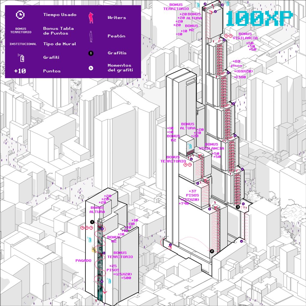 Analizar la ciudad como playground desde lo digital permite filtrar la caoticidad visual a la que se enfrenta uno en la cotidianidad, una de las razones por las que el graffiti suele ser complicado de comprender. Visualizarlos en perspectiva aérea permite un entendimiento completamente distinto al de primera persona, como los vemos en el día a día al transitar.