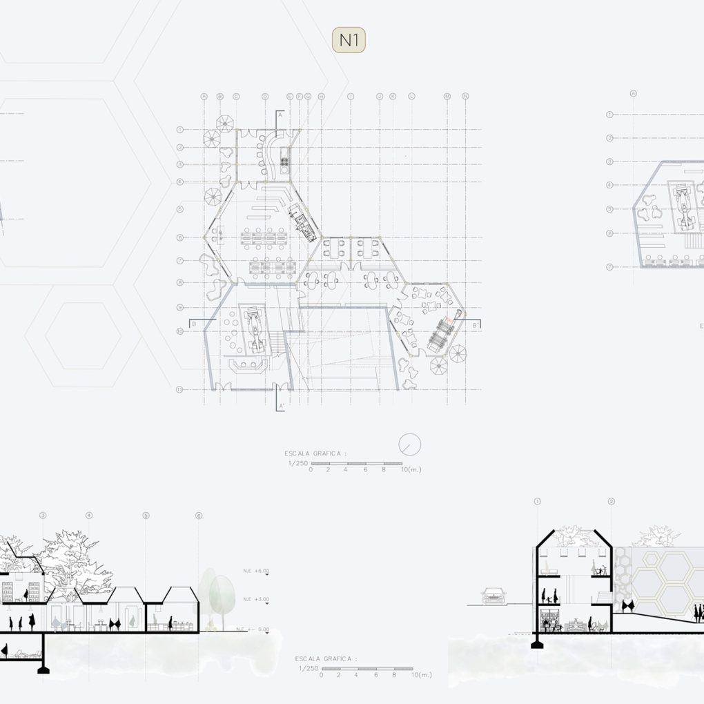 Se desarrollan metodologías de emplazamiento que logran intervenir sobre ejes paralelos y perpendiculares con la presencia de parques, ríos, zonas obreras y espacio de laburo. En la propuesta se enfatiza en la permeabilidad de un primer piso y espacios públicos en altura, que permiten crear recorridos a lo largo y ancho del proyecto convirtiéndolo en una propuesta distinta que logra distinguir usos privados de usos públicos sin la necesidad de realizar un cerramiento hacia la calle.