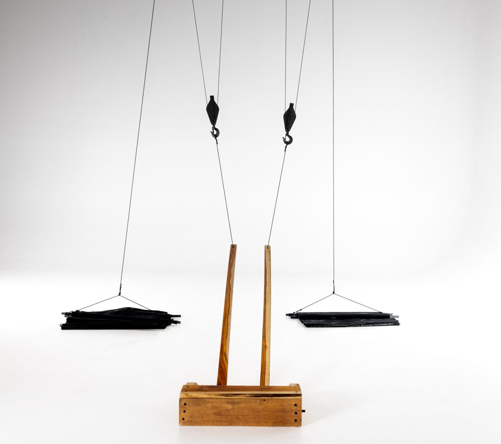 El Metatextil es una síntesis de esta documentación e invita a participar a lo humano de este ensamblado, a la vez que llama a la intervención de otros lenguajes desde la lógica textil. En el telar, el pedal y la acción de pisarlo, se encarga de llamar a participar a un marco y los hilos que contiene. Desde la misma lógica, este Metatextil cuenta con dos pedales que llaman a hacer parte a diversos registros que alojan los aprendizajes y el conocimiento que me convierten en tejedora, reconociendo todo lo qué/quién participa y lo qué/quién se produce.