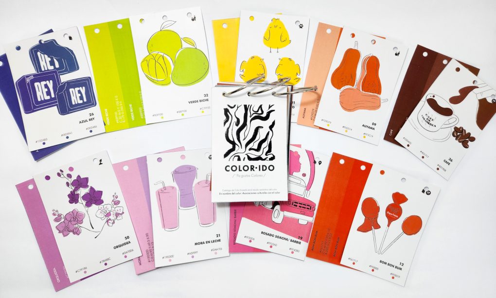 Mediante ilustraciones se representan las asociaciones lingüísticas del color que se dan en Colombia por medio de las cuales se designan nombres a los colores, con la finalidad de formalizar una categorización mucho más localizada que está asociada con signos lingüísticos, sociales y culturales encontrando un punto medio entre los creativos y las personas del común.