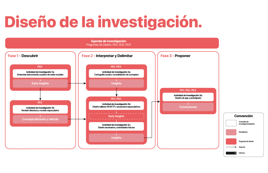 Este proyecto se desarrolló definiendo un marco teórico y conceptual soportado por el diseño especulativo y a través de diferentes etapas de descubrir, interpretar, delimitar y proponer, se llevó a cabo el planteamiento y desarrollo del proyecto.