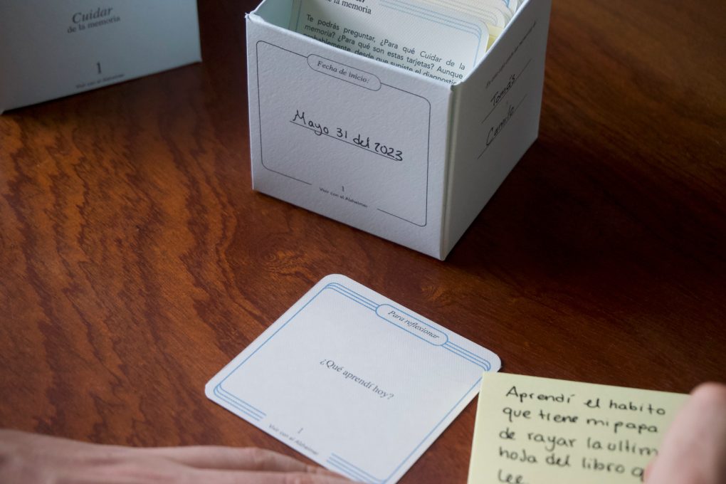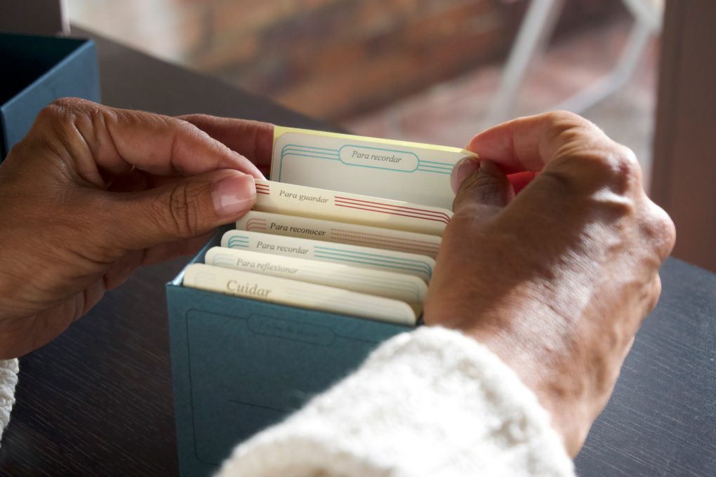 Quienes cuidan de un familiar con Alzheimer, no solo cuidan de su bienestar físico y emocional sino también de sus recuerdos… Se vuelven guardianes de sus memorias. Por eso, creé las tarjetas ‘Cuidar de la memoria’ que funcionan como una herramienta para ayudar a los cuidadores en el guardar y recordar… Recordar conversaciones, momentos, y experiencias que vivieron a lo largo del camino del cuidar del Alzheimer.