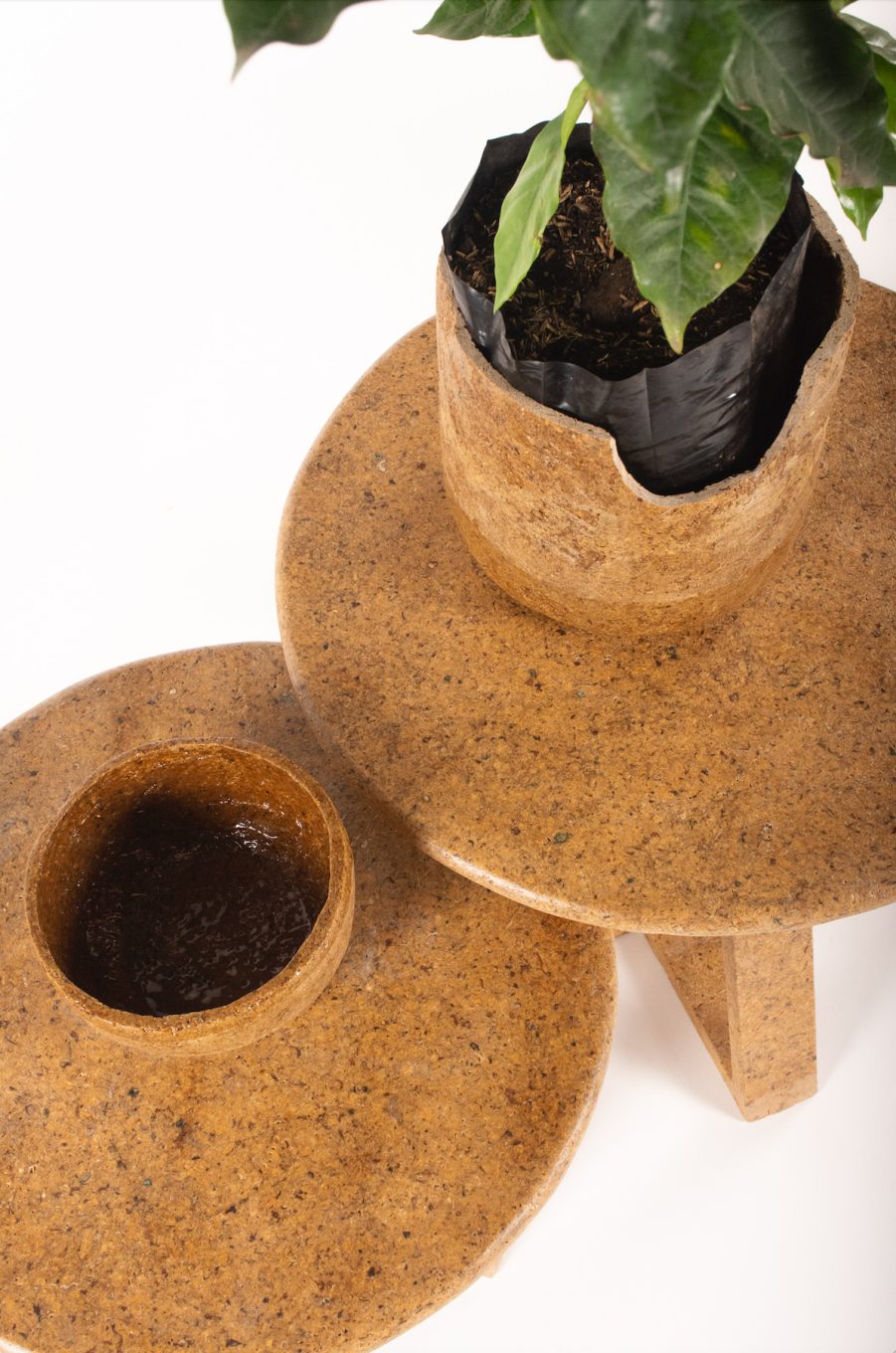 Maciso es el resultado de una experimentación material en donde se optimizó un desperdicio que representa un gran volumen en Colombia: el Cisco y se combinó con resinas naturales extraídas del marañón.