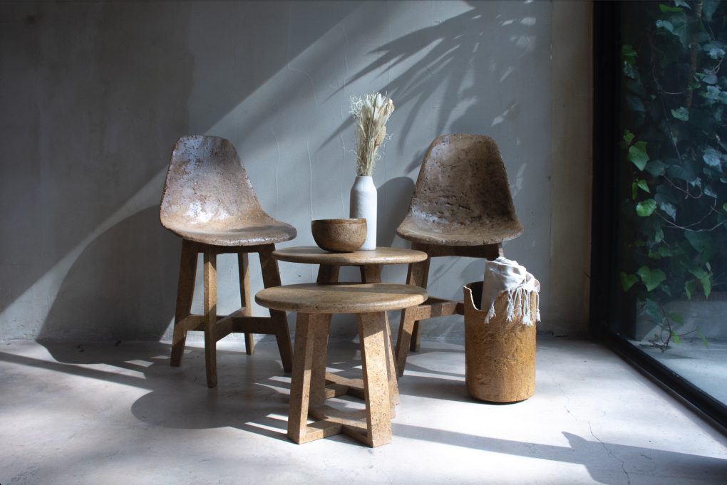 Maciso es el resultado de una experimentación material en donde se optimizó un desperdicio que representa un gran volumen en Colombia: el Cisco y se combinó con resinas naturales extraídas del marañón.