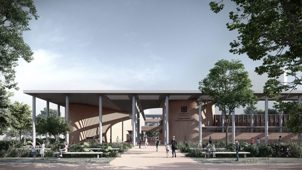 También se mencionó el Colegio Alfonso Jaramillo, un proyecto donde se propone que la educación se desarrolle de forma cercana a la naturaleza, por medio de un recorrido a través de terrazas, balcones y jardines que rematan en la cubierta desde donde se pueden ver los elementos geográficos del paisaje circundante.