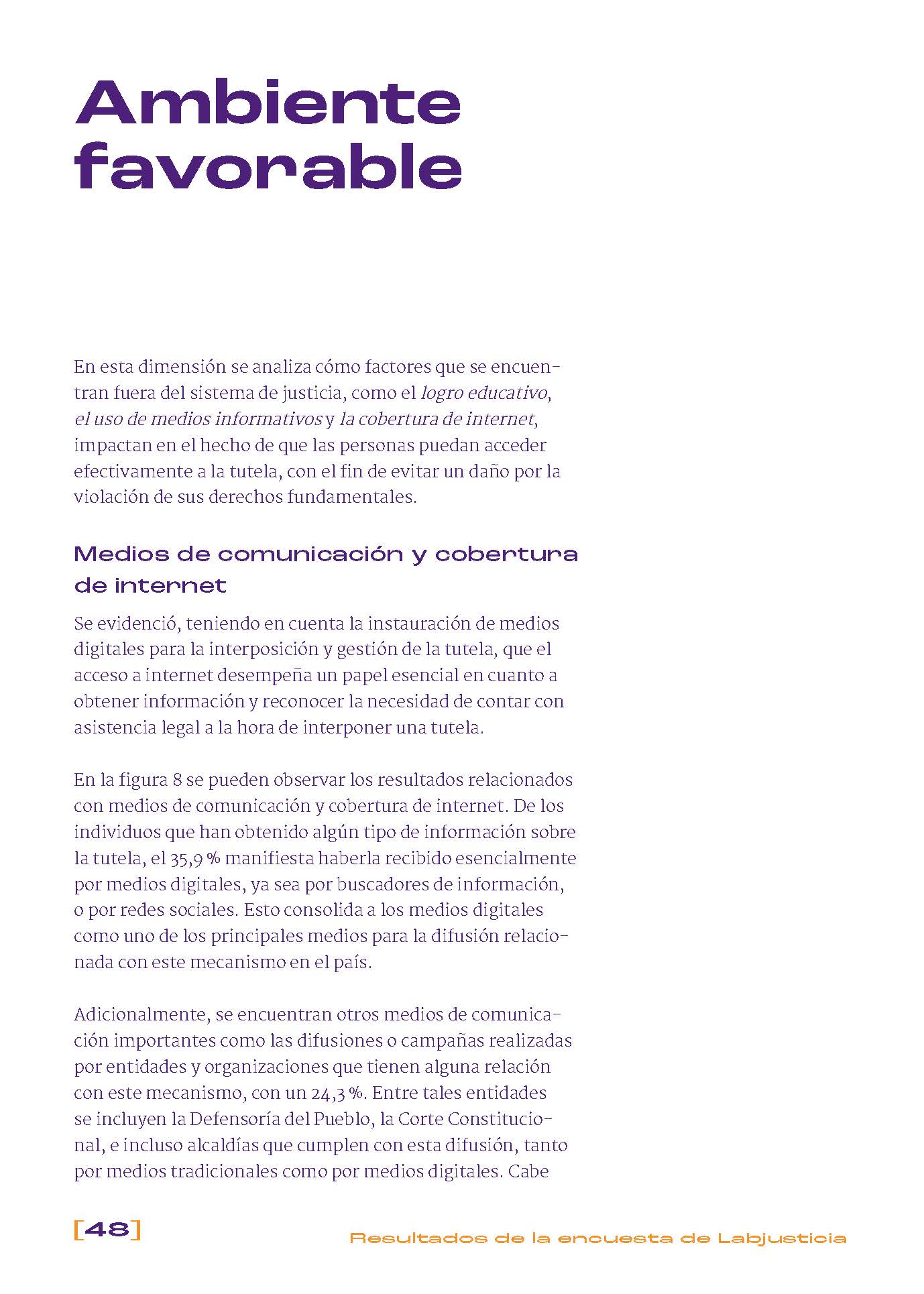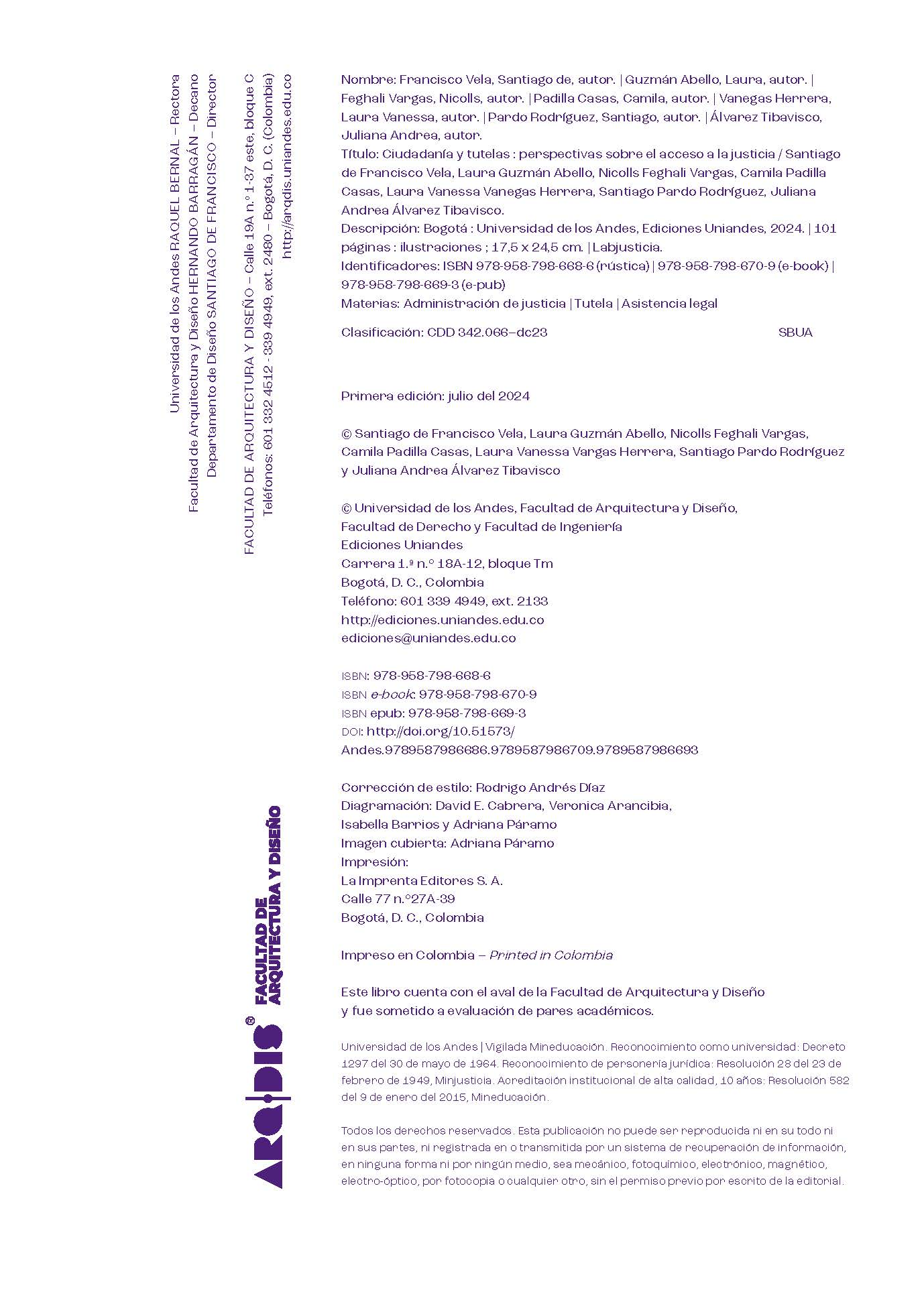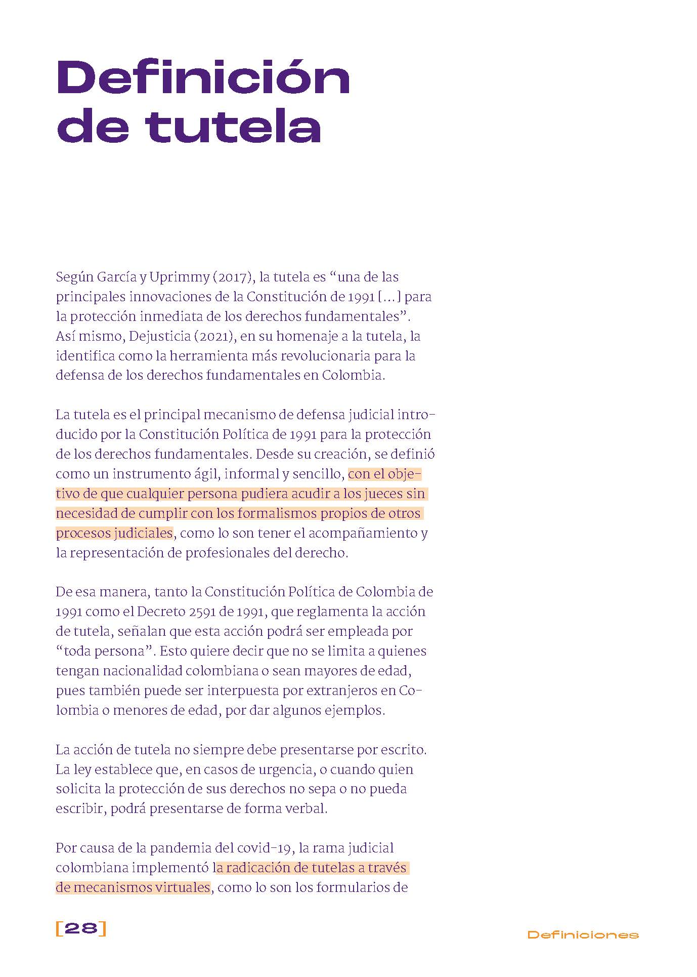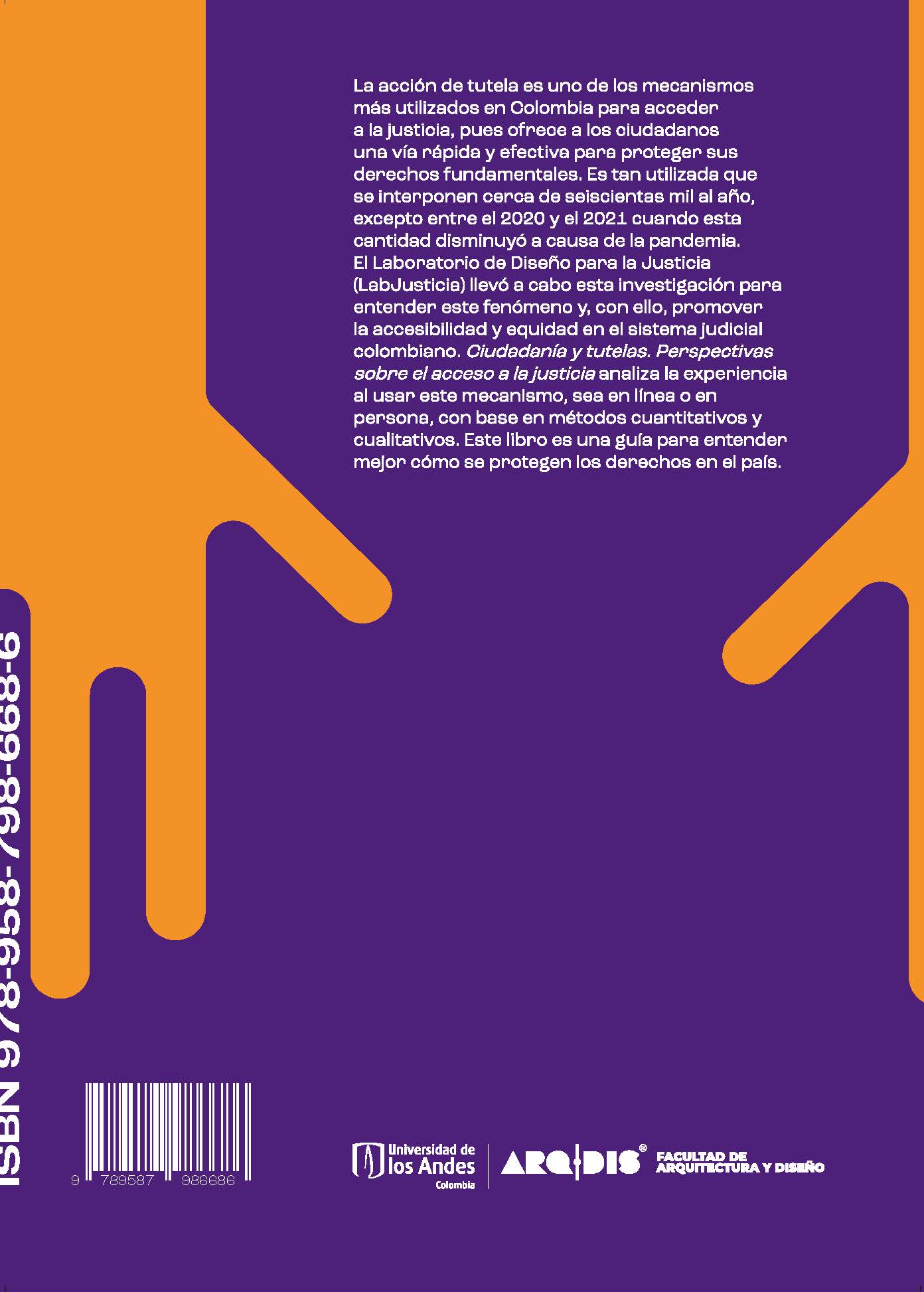 La acción de tutela es uno de los mecanismos más utilizados en Colombia para acceder a la justicia, pues ofrece a los ciudadanos una vía rápida y efectiva para proteger sus derechos fundamentales. Es tan utilizada que se interponen cerca de seiscientas mil al año, excepto entre el 2020 y el 2021 cuando esta cantidad disminuyó a causa de la pandemia. El Laboratorio de Diseño para la Justicia (LabJusticia) llevó a cabo esta investigación para entender este fenómeno y, con ello, promover la accesibilidad y equidad en el sistema judicial colombiano. Ciudadanía y tutelas. Perspectivas sobre el acceso a la justicia analiza la experiencia al usar este mecanismo, sea en línea o en persona, con base en métodos cuantitativos y cualitativos. Este libro es una guía para entender mejor cómo se protegen los derechos en el país.