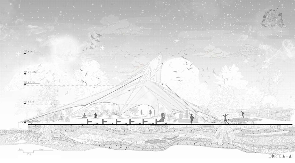 La segunda sección compila proyectos de nuestra comunidad estudiantil y docente a lo largo de los currículos, en donde la creación arquitectónica y de diseño busca responder a diferentes realidades, ofreciendo nuevas perspectivas. Los proyectos constituyen apuestas conscientes de la necesidad de reinventarse cotidianamente con el fin de perfeccionar nuestra capacidad para interpretar de forma más acertada el bienestar y el hacer. Combinar concepciones globales con tradiciones, gustos y colores locales y regionales puede darnos la pista para hallar mejores formas de lidiar con el presente y educar para un futuro más promisorio.